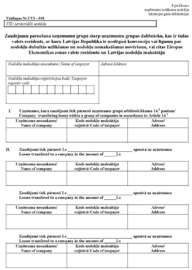 3.13. uzņēmumu grupas dalībnieki, kuri pārnes zaudējumus vai samazina apliekamo ienākumu par uzņēmumu grupā pārnestajām zaudējumu summām, vienlaikus ar uzņēmumu ienākuma nodokļa taksācijas gada deklarāciju Valsts ieņēmumu dienestā iesniedz minētās deklarācijas 7. vai 8.pielikumu;