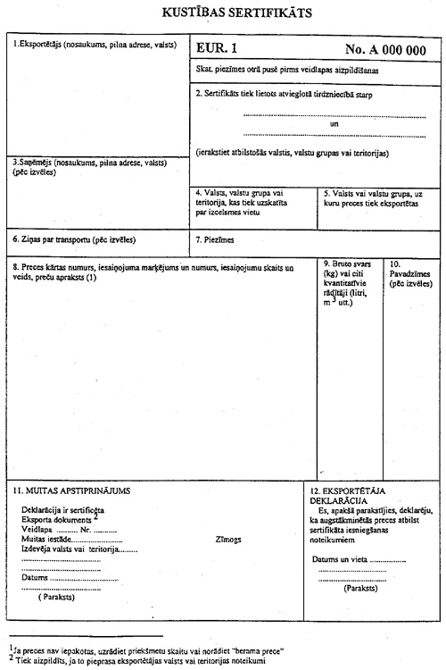 2. Šī Līguma Pušu muitas iestādes var paturēt tiesības pašām iespiest veidlapas vai var nodot to iespiešanu pilnvarotām spiestuvēm. Pēdējā gadījumā, katrai veidlapai ir jāsatur atsauce uz šādu pilnvarošanu. Uz katras veidlapas jābūt iespiedēja vārdam un adresei vai zīmei, pēc kuras iespiedēju var identificēt. Uz tās jābūt arī sērijas numuram, iespiestam vai neiespiestam, pēc kura veidlapu var identificēt.