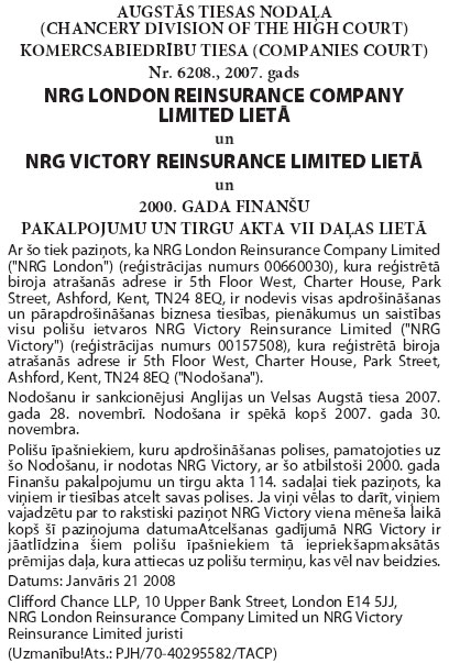 Darba ziņojuma sabiedriskā apspriešana notiks 2008.gada 1. februārī plkst. 11 Īslīces kultūras namā Bauskas rajonā, Īslīces pagastā, “Rītausmās”, LV-3901.