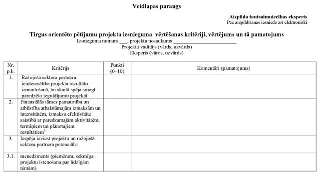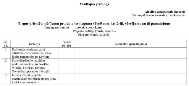 30. Ja atkārtotajā zinātniskajā un tautsaimnieciskajā ekspertīzē kāda kritērija vērtējums ir 0, 1 vai 2, projekts netiek atbalstīts.