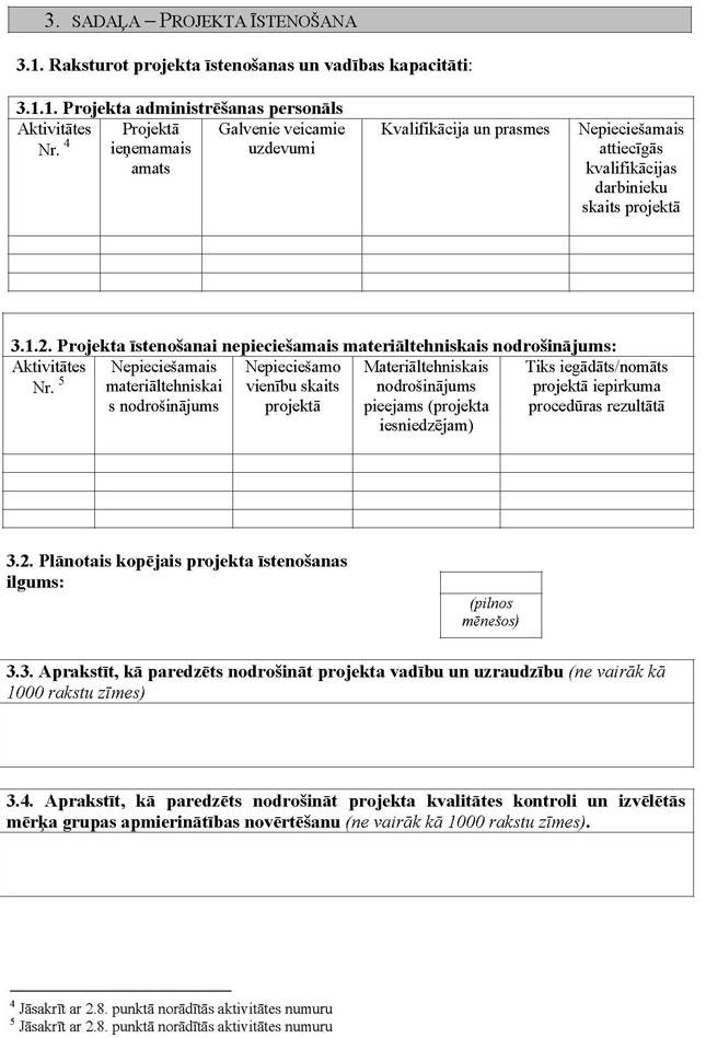 "22.3.2. projekta iesniegums ietver projekta īstenošanas gatavības novērtējumu, īstenošanas risku un to līmeņu analīzi;".
