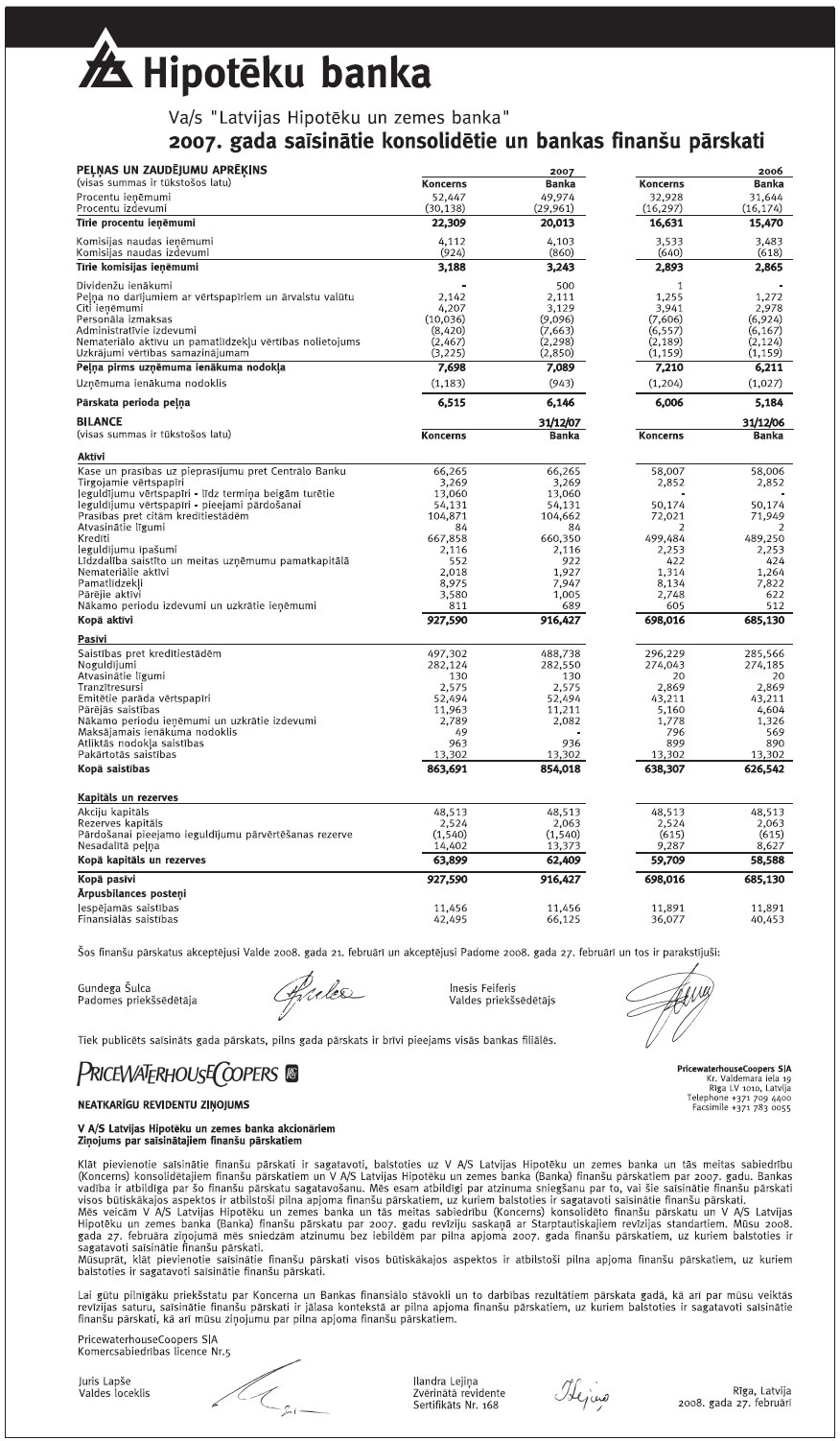 Darbības pārskati. Publicēts oficiālajā laikrakstā "Latvijas Vēstnesis", 1.04.2008., Nr. 50 https://www.vestnesis.lv/ta/id/173154