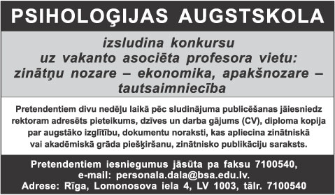 LEKTORS studiju priekšmetā: Personāla vadīšana – 1 vakance (0,08 slodze)