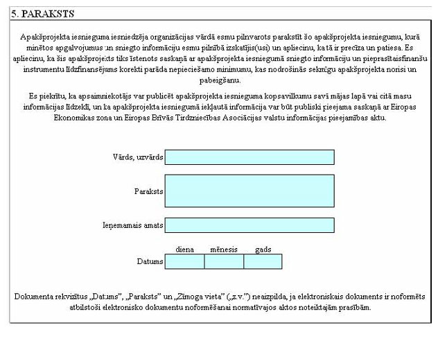 Apakšprojekta iesnieguma veidlapu parakstījis apakšprojekta iesnieguma iesniedzēja institūcijas vadītājs vai viņa pilnvarota persona |