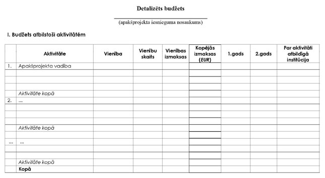 Apakšprojekta finanšu aprēķins ir veikts Eiropas Savienības vienotajā valūtā |
