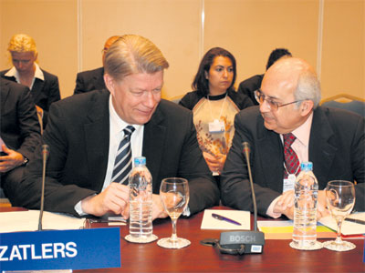 Pasaules ekonomikas forumā: Portugāles prezidents Žoržs Sampaiju, Latvijas Valsts prezidents Valdis Zatlers un Latvijas vēstnieks Ēģiptē Māris Selga