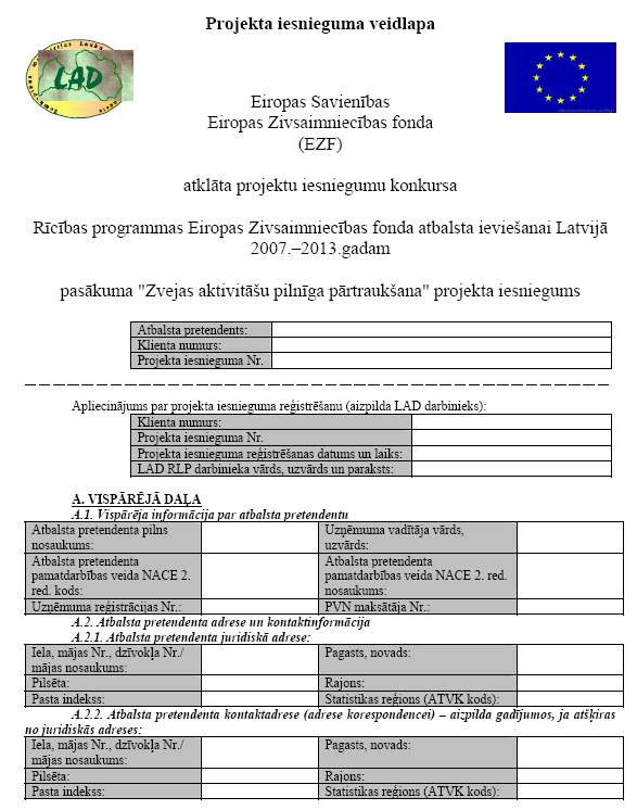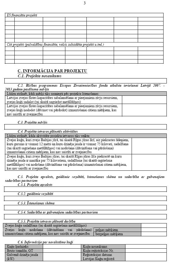 14.1. projekta iesniegumu divos eksemplāros (arī elektroniski). Par katru zvejas kuģi iesniedz atsevišķu projekta iesniegumu;