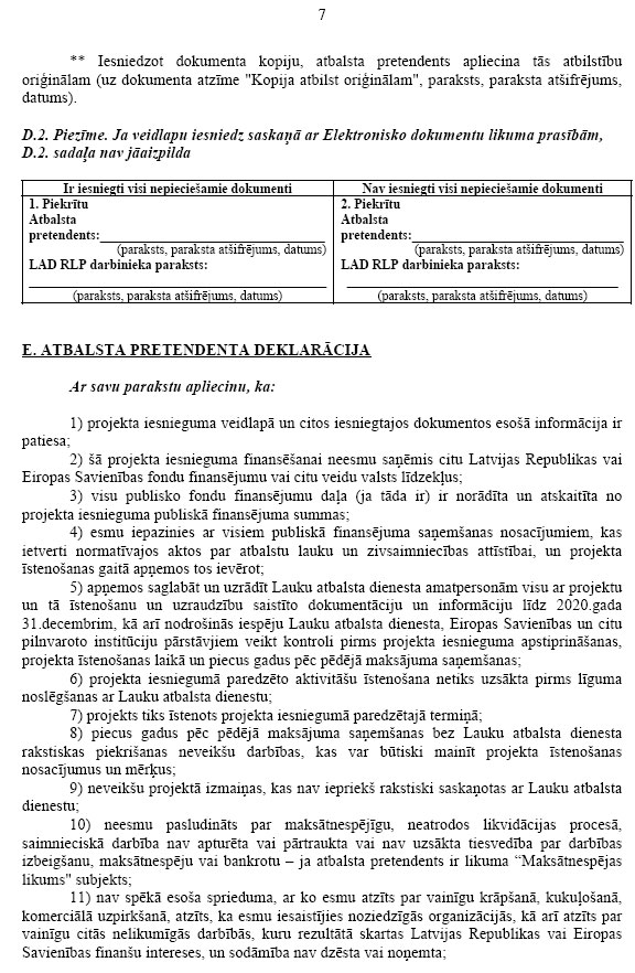 27.6. projekta iesniegumā paredzēto aktivitāšu īstenošana netiks uzsākta pirms līguma noslēgšanas ar Lauku atbalsta dienestu;