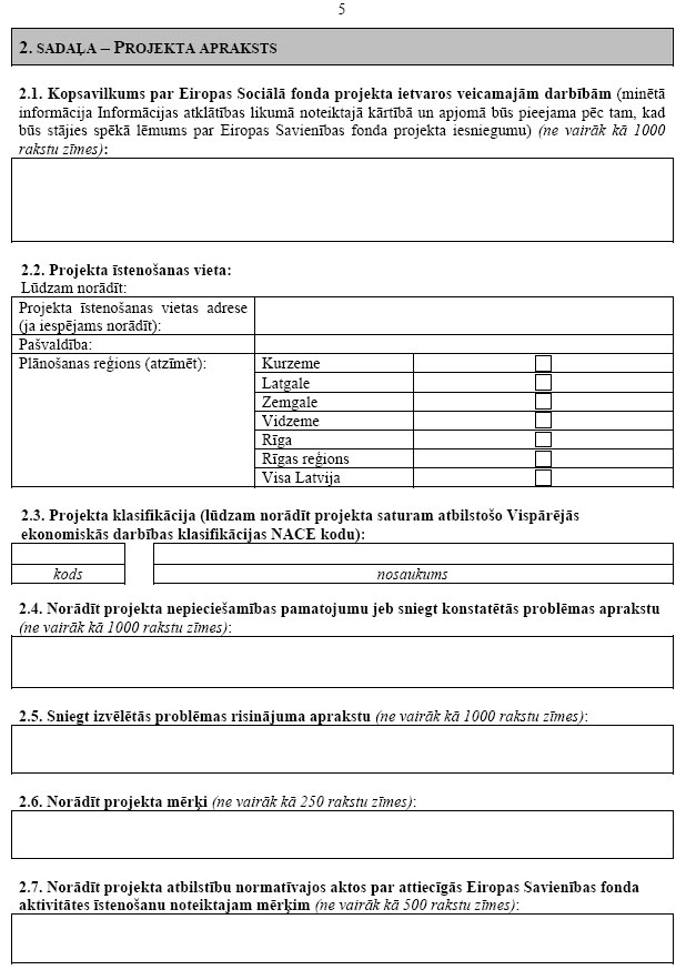 5. Aktivitāti īsteno Eiropas Sociālā fonda ierobežotās projektu iesniegumu atlases veidā.