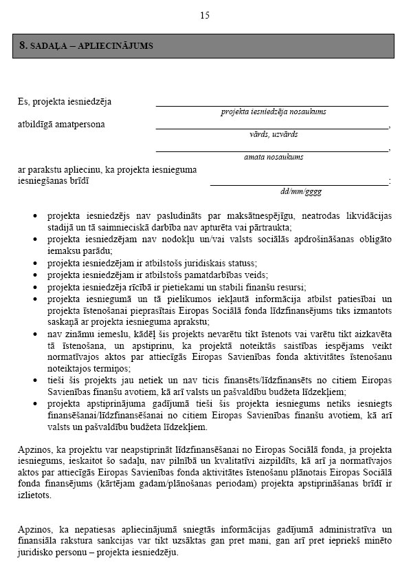 Projekta iesniegums ir aizpildīts datorrakstā (ja attiecināms) |