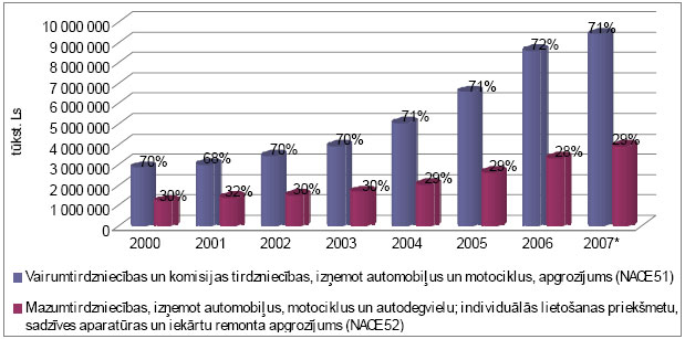Vairumtirdzniecības un mazumtirdzniecības uzņēmumu apgrozījums (2000.–2007.gads)