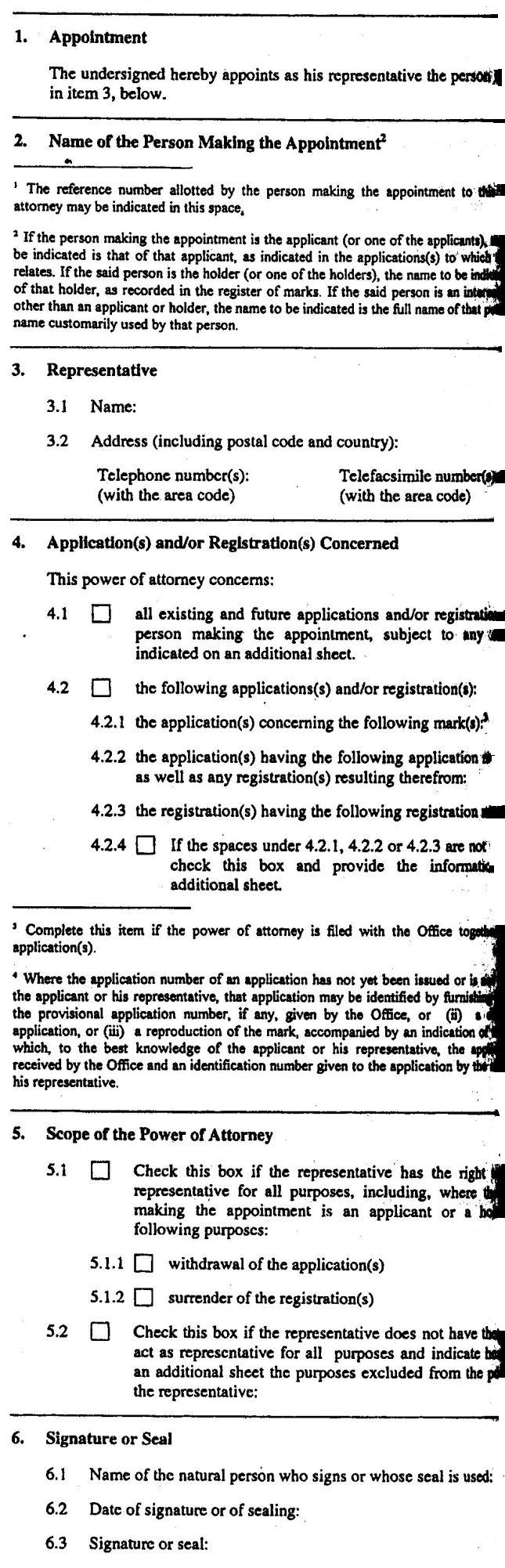 (b) The power of attorney may relate to one or more applications and/or registrations identified in the power of attorney or, subject to any exception indicated by the appointing person, to all existing and future applications and/or registrations of that person.