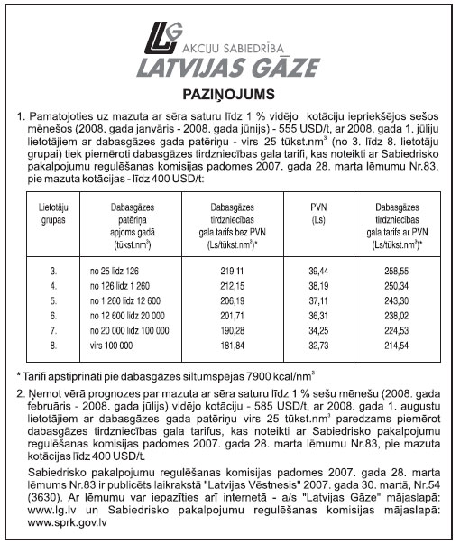 SIA “EIROMĀJA” un Nataļja Teterina paziņo dzīvojamās mājas Rīgā, Katoļu ielā 29, dzīvokļa nr. 32 īrniecei LĪGAI PAVLOVAI, pers. kods: 2406XX-XXXXX un dzīvokļa nr. 10 īrniecei NATAĻJAI MOROZOVAI, pers. kods: 3005XX-XXXXX, ka saskaņā ar veiktajiem aprēķiniem īres maksa tiek noteikta LVL 3 par vienu kvadrātmetru. Noteiktā īres maksa stājas spēkā pēc sešiem mēnešiem no paziņojuma publicēšanas dienas.