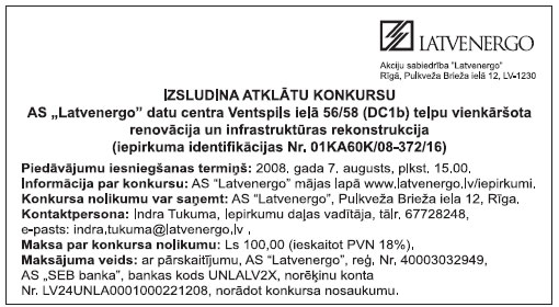 Piedāvājumu iesniegšanas pēdējais termiņš: 2008.gada 25.jūlijs plkst. 12.