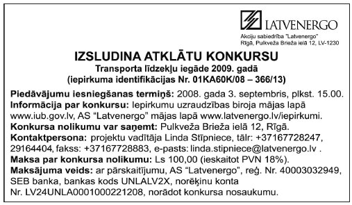 Konkurss notiks 2008. gada 13. augustā plkst. 11.