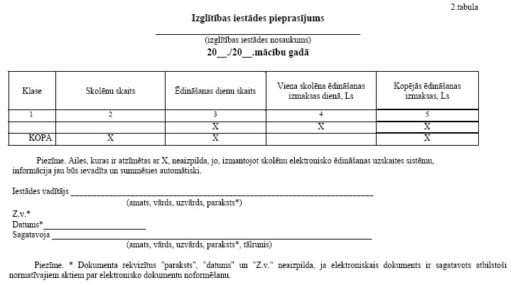 16. 2008./2009.mācību gadā pamatizglītības iestāde un pašvaldība valsts budžeta līdzekļu pieprasījumu, datus par skolēnu skaita izmaiņām, pārskatu par valsts budžeta līdzekļu izlietojumu iesniedz papīra formā un elektroniski, izmantojot elektronisko skolēnu ēdināšanas uzskaites sistēmu, kuras pārzinis ir ministrija. Ja pamatizglītības iestāde vai pašvaldība iesniedz valsts budžeta līdzekļu pieprasījumu un informāciju par skolēnu skaita izmaiņām elektroniska dokumenta veidā, kas parakstīts ar drošu elektronisko parakstu, valsts budžeta līdzekļu pieprasījumu, datus par skolēnu skaita izmaiņām un pārskatu par valsts budžeta līdzekļu izlietojumu papīra formā neiesniedz.