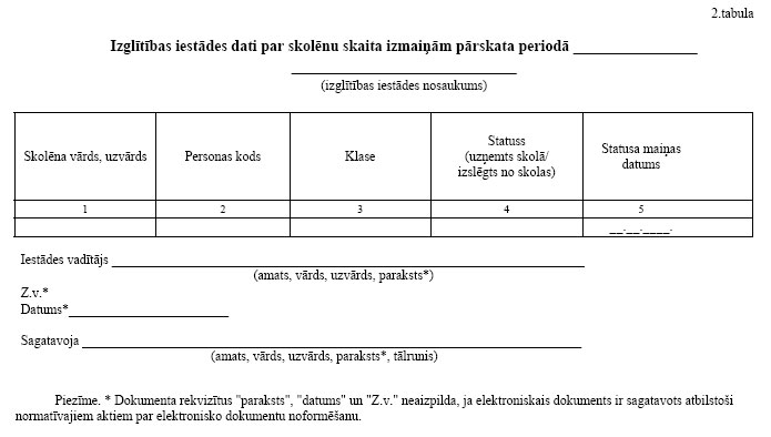 6.3. datus par skolēnu skaita izmaiņām, ja ir mainījies skolēnu skaits, kuru ēdināšanai izlietojami valsts budžeta līdzekļi, – katru mēnesi līdz piektajam datumam par iepriekšējo mēnesi (3.pielikums 2.tabula).