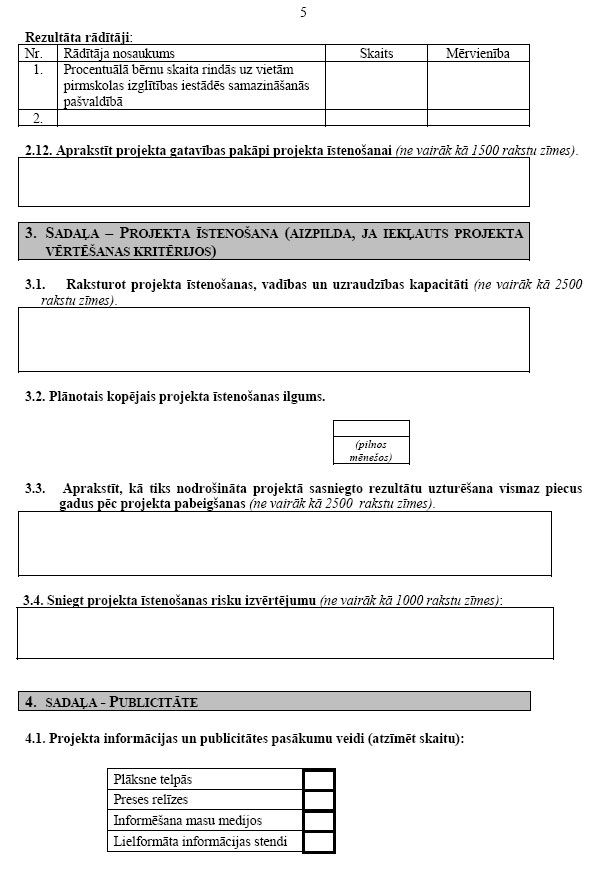 19.5. projekta iesniegumu sagatavo un iesniedz datorrakstā latviešu valodā bez neatrunātiem labojumiem, dzēsumiem, aizkrāsojumiem, svītrojumiem vai papildinājumiem;