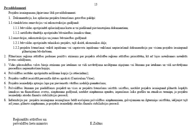 Reģionālās attīstības un pašvaldību lietu ministrijas iesniegtajā redakcijā