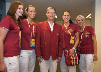 Zatlers kopā ar Latvijas sieviešu basketbola olimpiskās