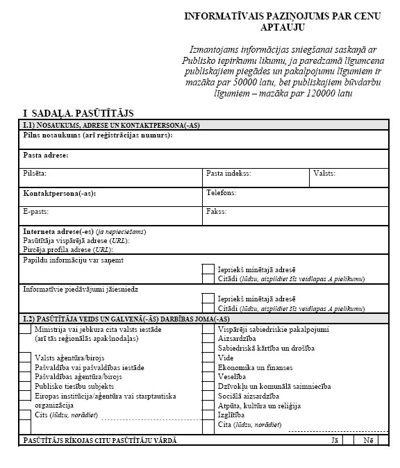 2.1. informatīvais paziņojums par cenu aptauju (1.pielikums). Šo veidlapu pilnvarota persona aizpilda, piemērojot cenu aptauju;