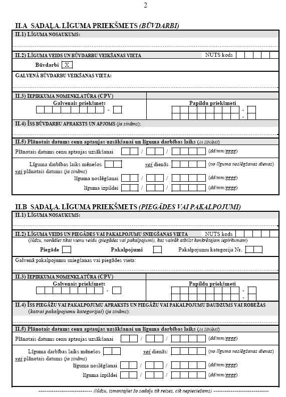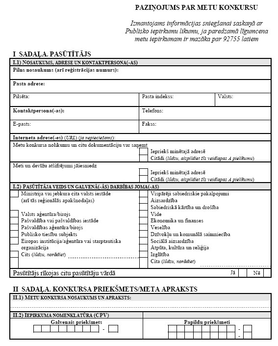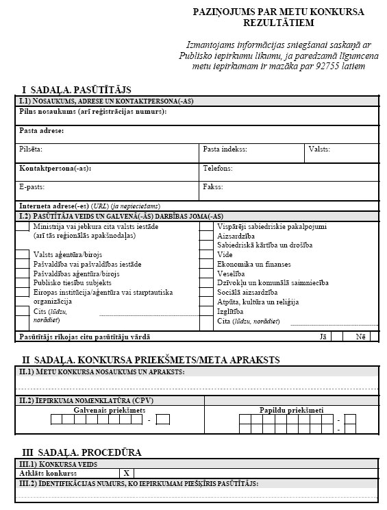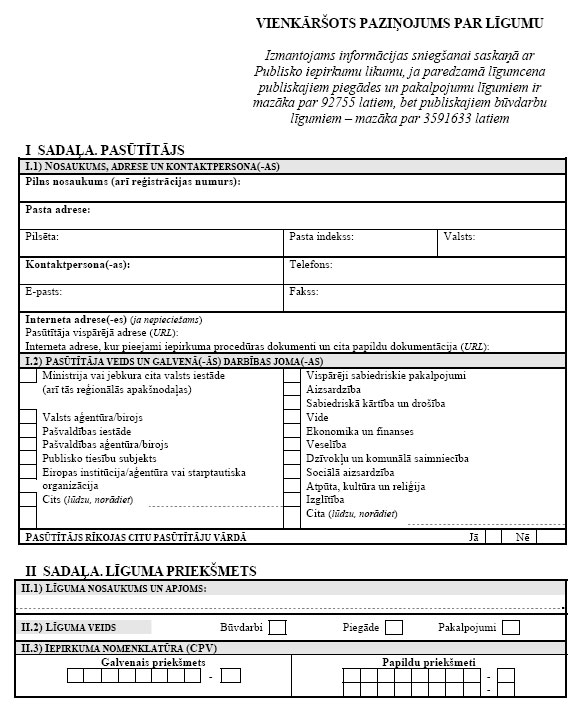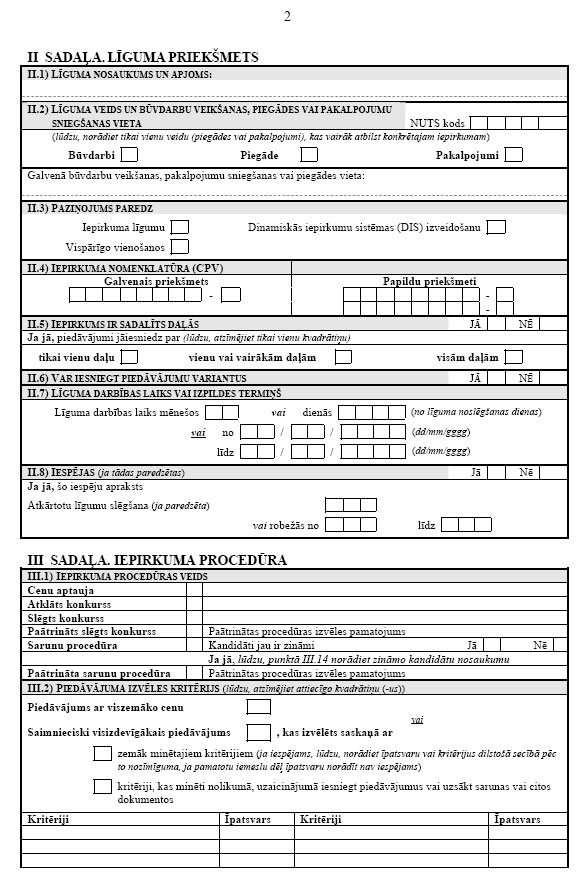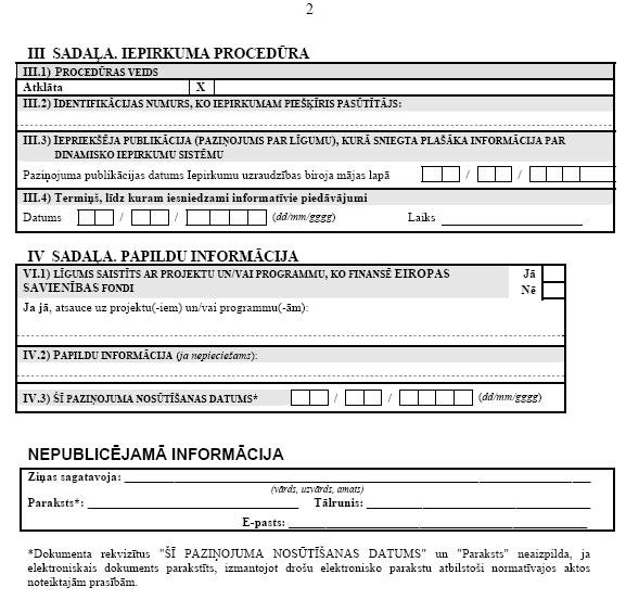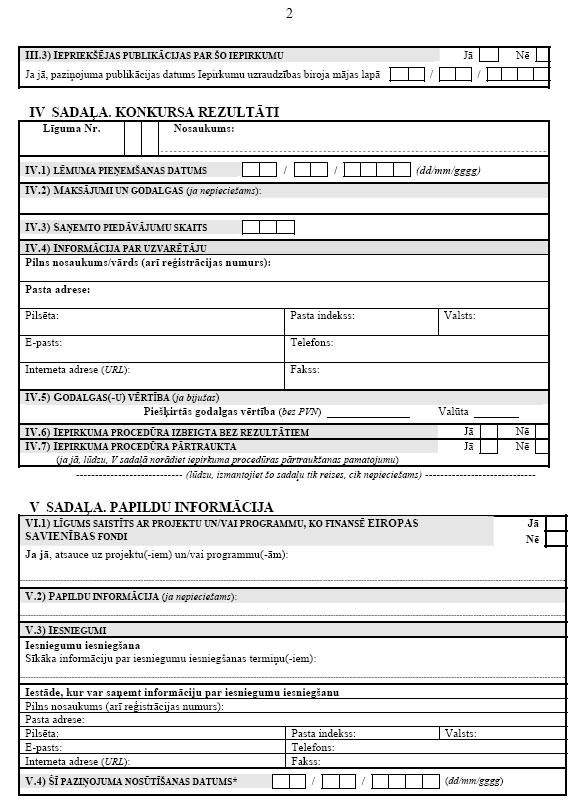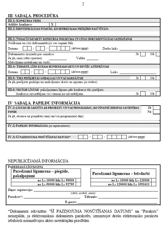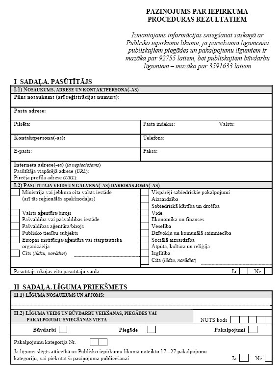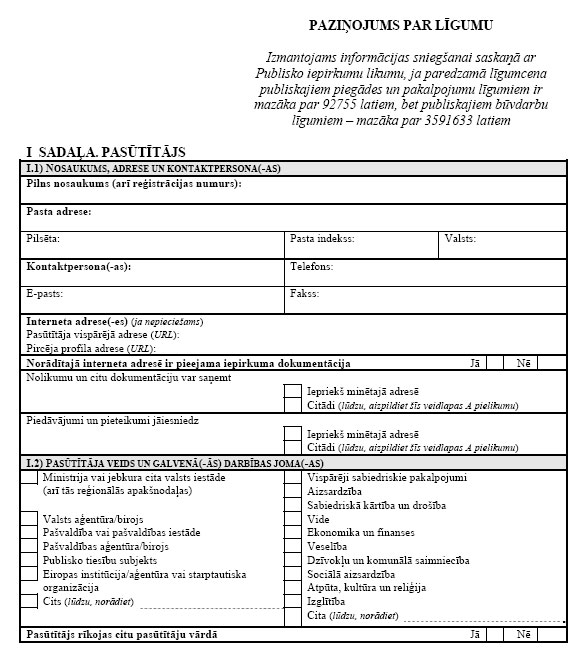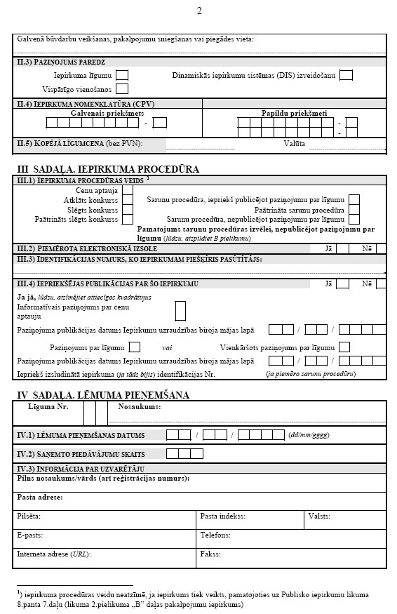 2.2. paziņojums par līgumu (2.pielikums). Šo veidlapu pilnvarota persona aizpilda, piemērojot atklātu konkursu, slēgtu konkursu, cenu aptauju, sarunu procedūru, kā arī dinamisko iepirkumu sistēmu;