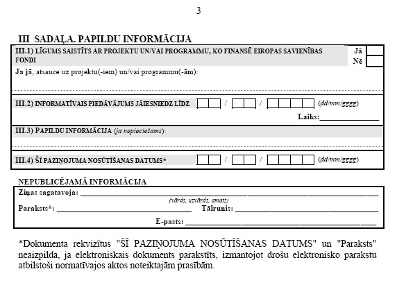 3. Iepirkumu uzraudzības birojs ievieto savā mājaslapā internetā paziņojumu veidlapu elektroniskus atvasinājumus, kuri ir izmantojami paziņojumu iesniegšanai, izmantojot XML datnes un drošu elektronisko parakstu.
