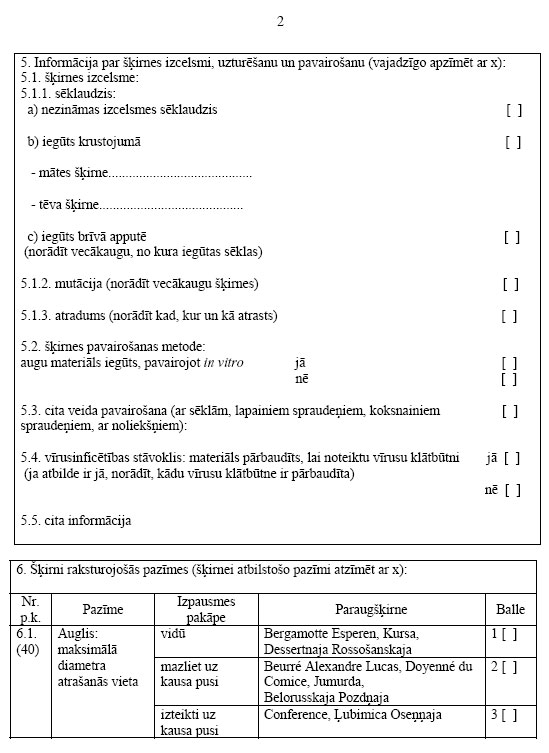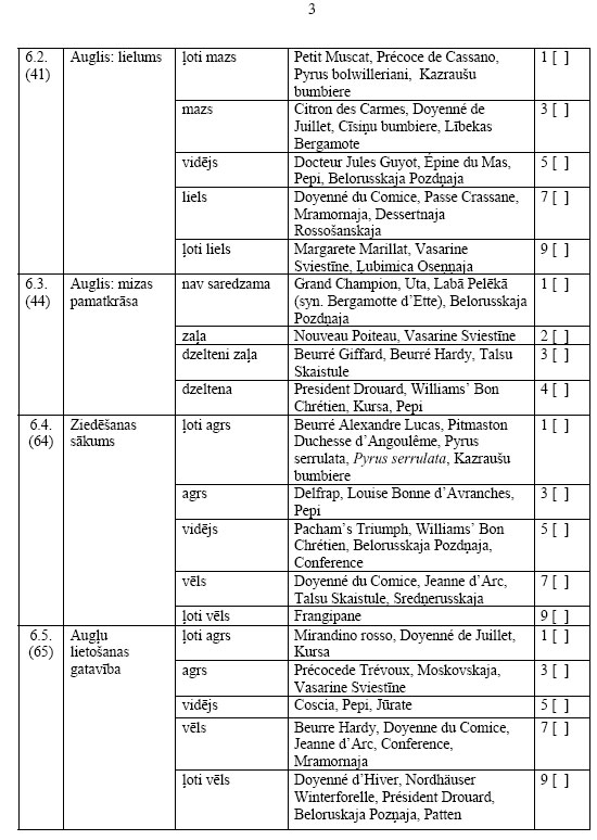 Piezīme. * Pazīmes, kuras jānovēro ik gadus visām šķirnēm un obligāti jāiekļauj to aprakstā, izņemot gadījumu, ja iepriekšējā pazīmes izpausmes pakāpe vai reģiona vides apstākļi to neļauj.