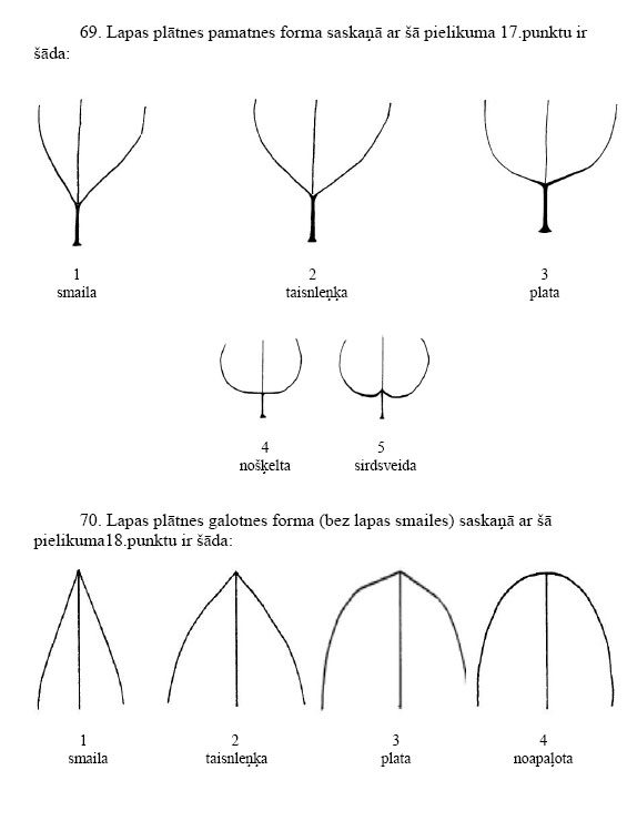 II. Šķirņu pazīmju grafiskie attēli un paskaidrojumi