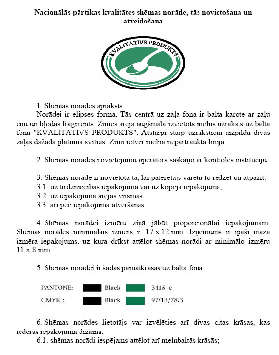 9. Produkts atbilst nacionālās pārtikas kvalitātes shēmas prasībām: