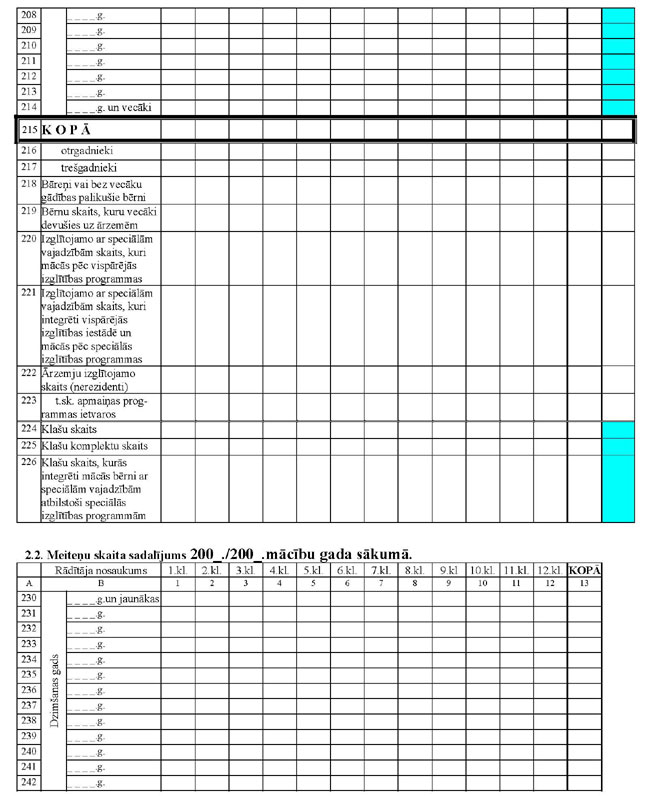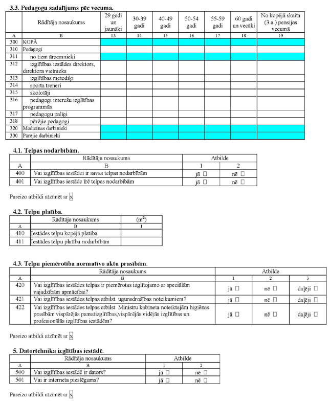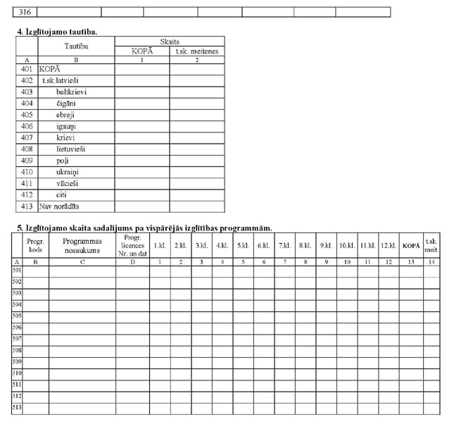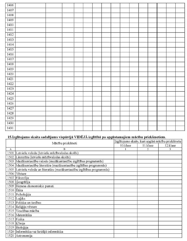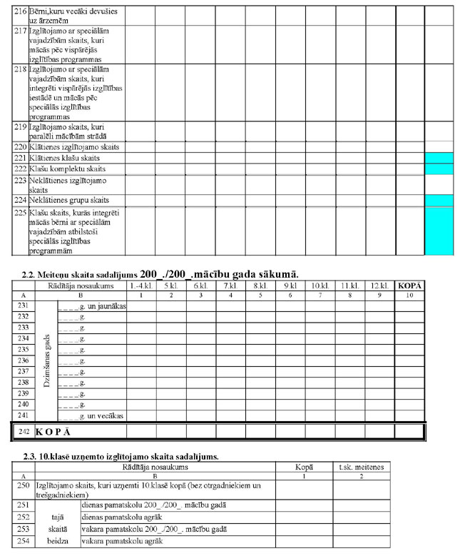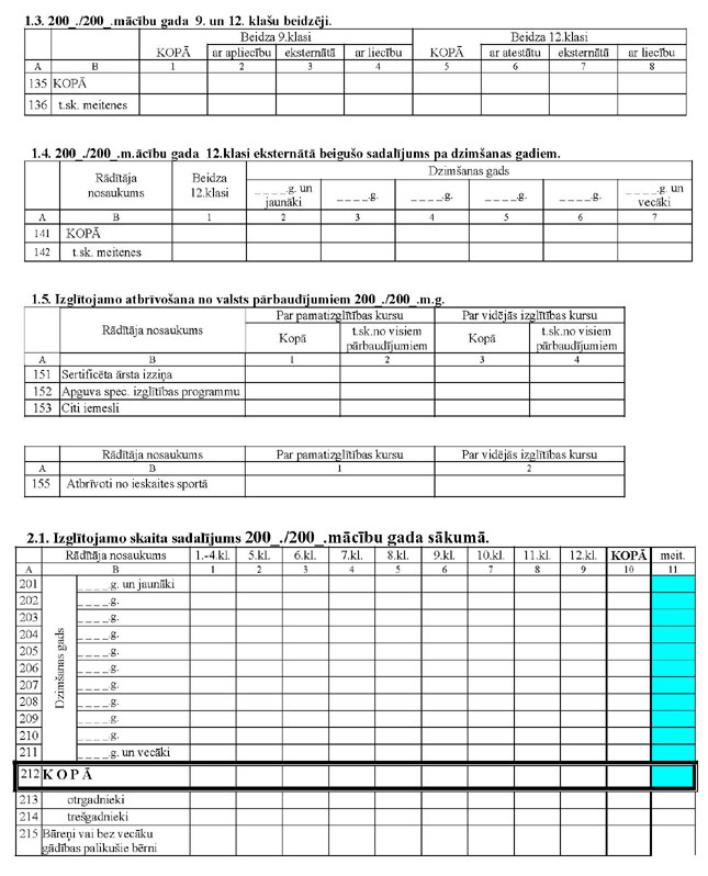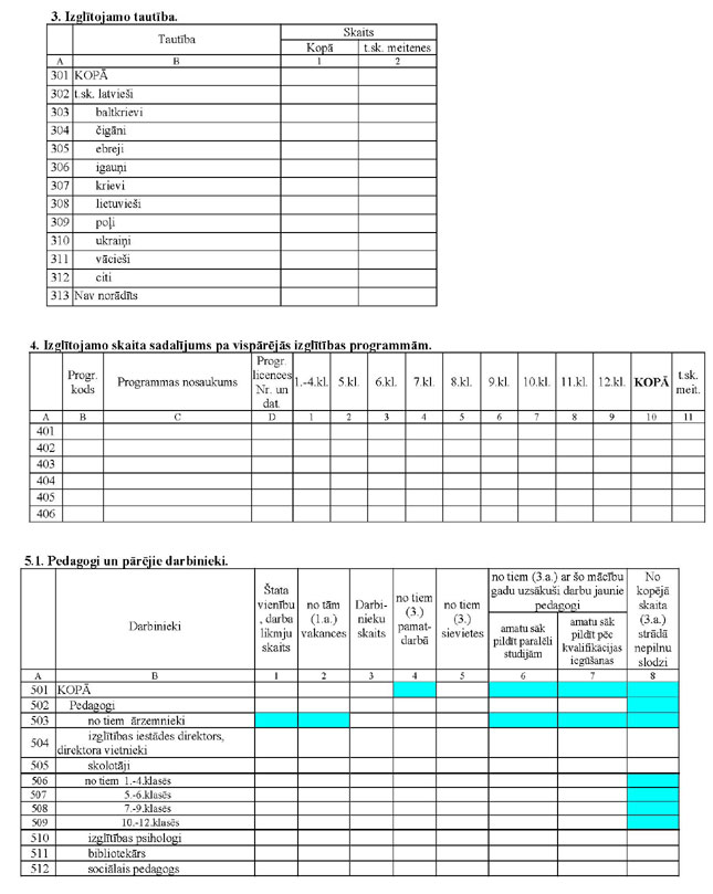 Noteikumi par izglītības valsts statistikas pārskatu veidlapu paraugiem