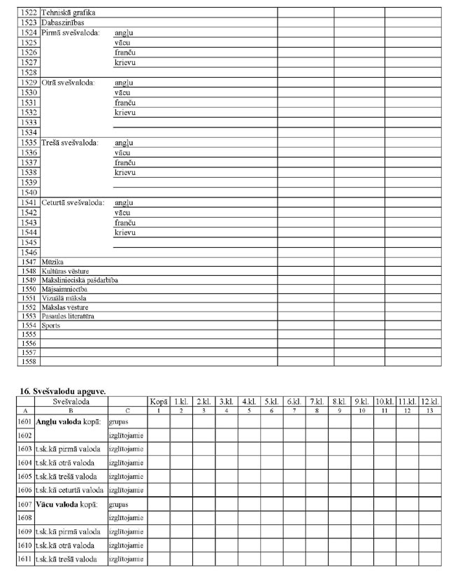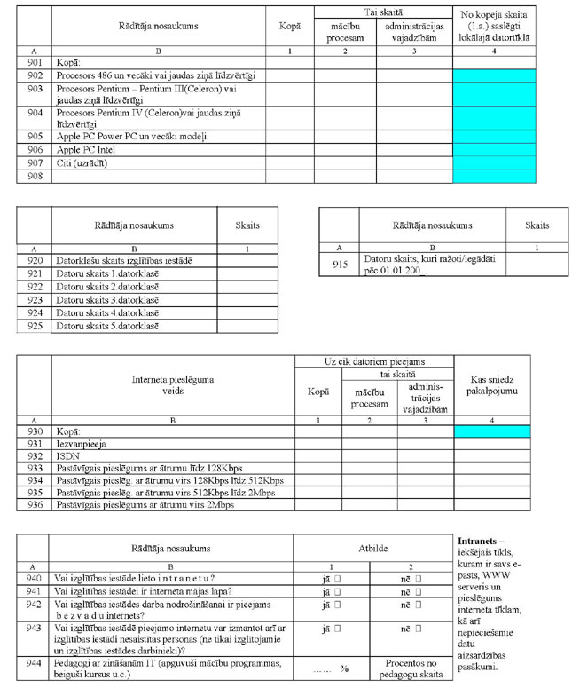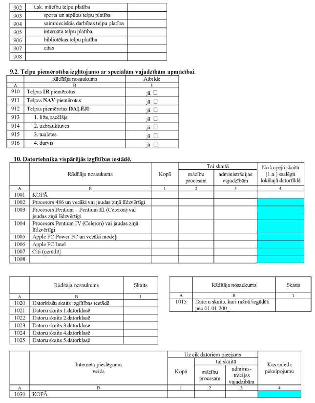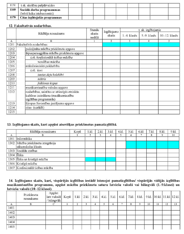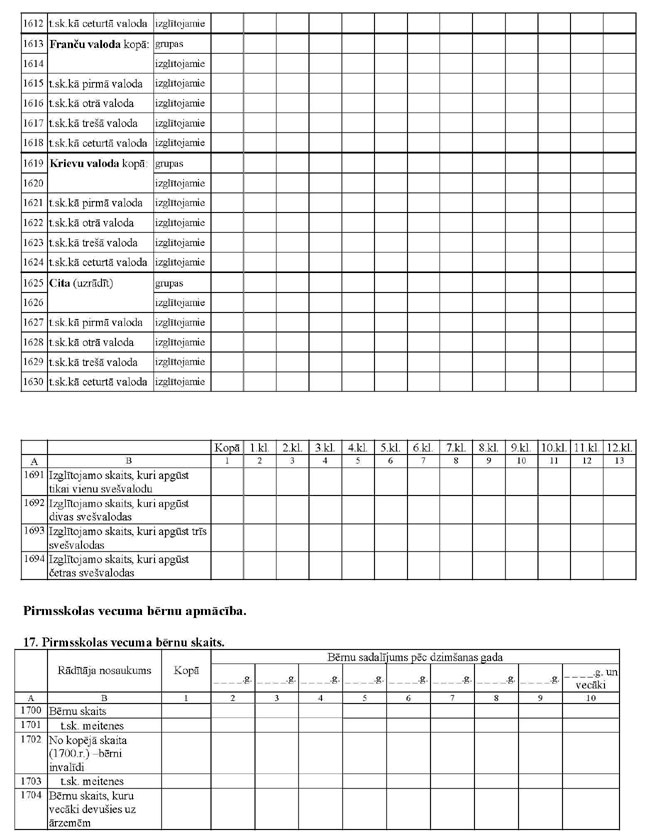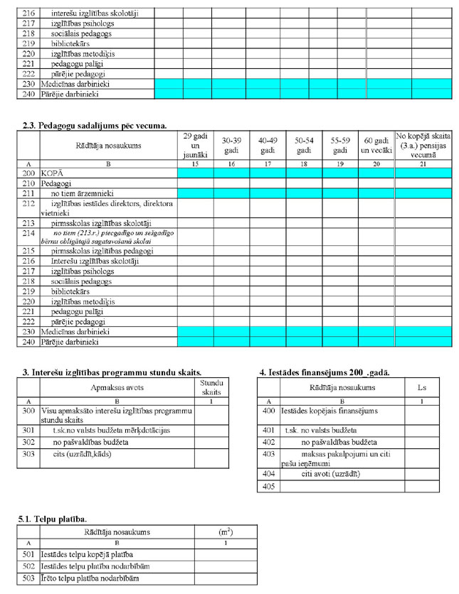 Noteikumi par izglītības valsts statistikas pārskatu veidlapu paraugiem