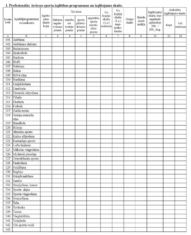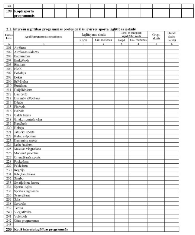 2.4. Profesionālās ievirzes izglītības iestādes pārskats (Prof-ISIP) (4.pielikums). Veidlapu aizpilda izglītības iestādes, kuras īsteno profesionālās ievirzes sporta izglītības programmas saskaņā ar Prof-ISIP veidlapā minētajiem norādījumiem.
