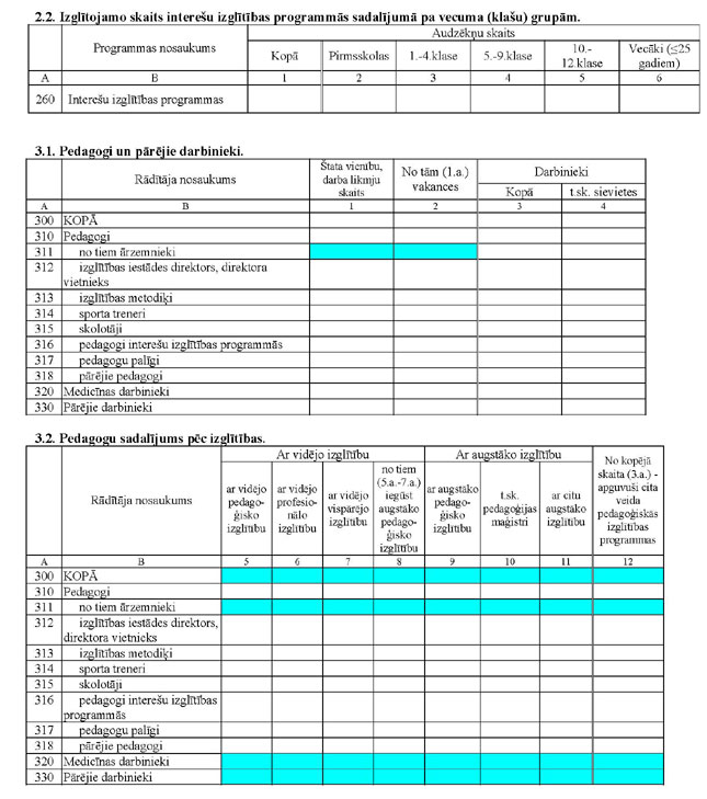 2. Noteikumi apstiprina šādas izglītības valsts statistikas pārskatu veidlapas: