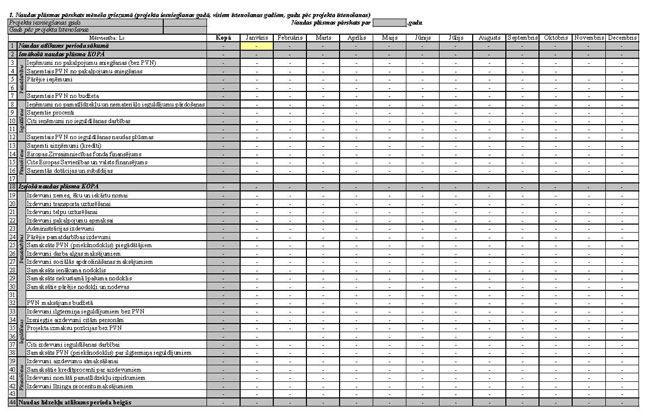 11.6. projekta naudas plūsmas pārskats pa mēnešiem projekta iesnieguma iesniegšanas gadā, turpmākajos gados līdz projekta īstenošanas beigām un gadā pēc projekta īstenošanas. Naudas plūsmā naudas atlikums katra mēneša beigās ir pozitīvs. Projekta iesniegumam pievienotā naudas plūsma projekta iesnieguma iesniegšanas gadā, visos īstenošanas gados un gadā pēc projekta īstenošanas liecina par iespēju projektu īstenot un sasniegt mērķi;