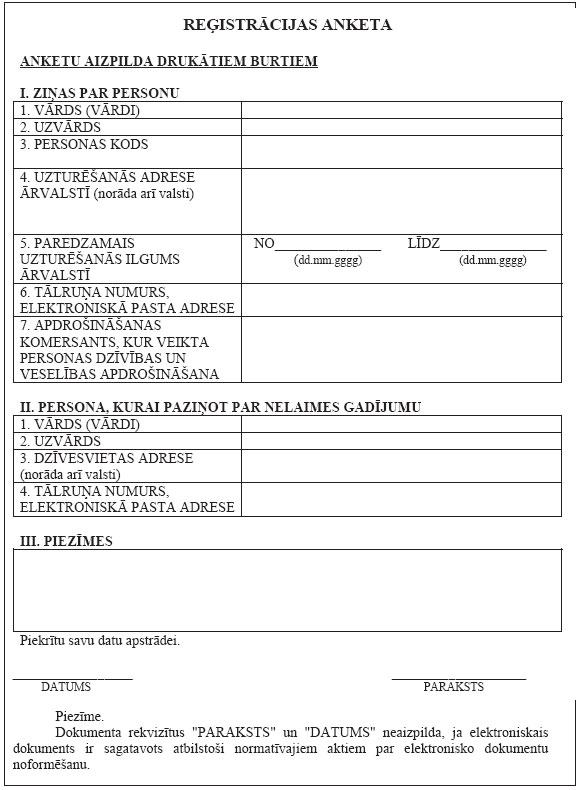 6.1. vienā no šo noteikumu 5.punktā minētajām iestādēm iesniedz aizpildītu un parakstītu reģistrācijas anketu (pielikums);