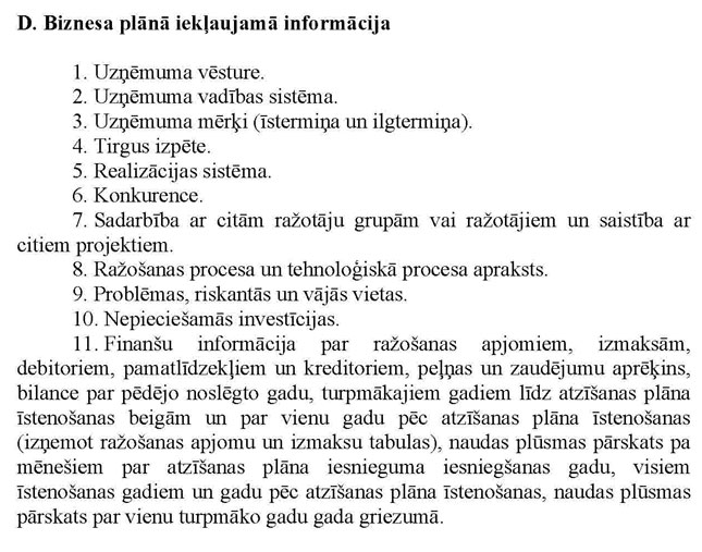 7.1. standartizētu biznesa plānu (1.pielikuma D un E sadaļa), tai skaitā pierādījumu apkopojumu par ražotāju grupas ekonomisko dzīvotspēju pēdējā noslēgtajā gadā pirms atzīšanas plāna iesnieguma iesniegšanas. Ražotāju grupa atbilst vismaz diviem šādiem rādītājiem: