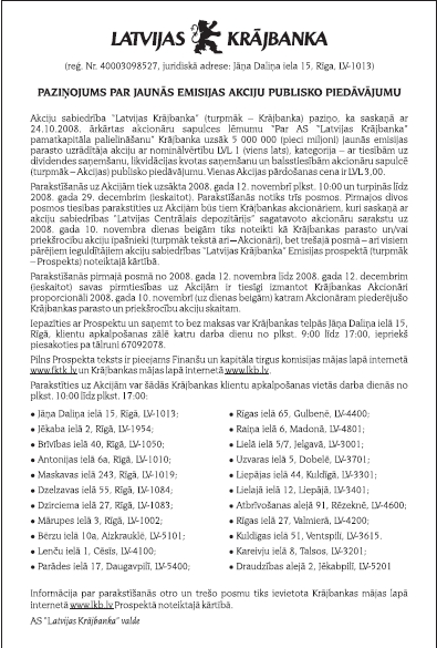Paziņojumi akcionāriem, dalībniekiem, biedriem