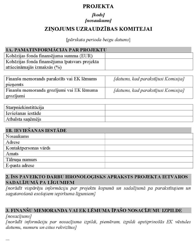 VI. Ziņojumu sagatavošana uzraudzības komitejai