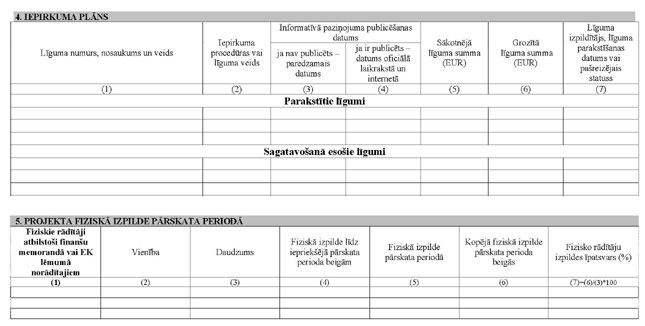 36.6. ziņojuma 5.daļu “Projekta fiziskā izpilde pārskata periodā” un 6.daļu “Projekta finanšu izpilde pārskata periodā” aizpilda līdzīgi kā attiecīgo daļu pārskatā par projekta ieviešanu (1.pielikums);