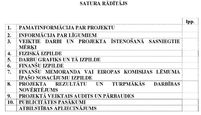 16. 90 dienu laikā pēc finanšu memorandā vai EK lēmumā noteiktā projekta beigu datuma vai, ja projekts noslēdzies ātrāk, pēc projekta faktiskā noslēguma datuma starpniekinstitūcija iesniedz vadošajā iestādē saskaņoto projekta noslēguma ziņojumu un noslēguma ziņojuma atbilstības apliecinājumu (6.pielikums) divos ar parakstu apliecinātos eksemplāros, pievienojot publicitātes materiālus par visu pārskata periodu (kopijas).