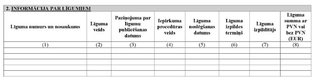38.2. ziņojuma 2.daļā “Informācija par līgumiem” norāda: