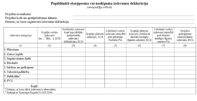 33. Aizpildot projekta starpposma vai noslēguma izdevumu deklarāciju, ievēro vienotu stilu, rakstot summas un procentus, – divi cipari aiz komata (summām) un viens cipars aiz komata (procentiem).