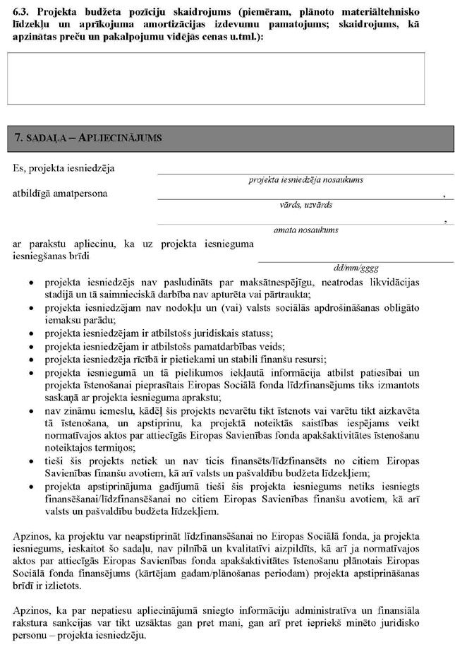 Projekta iesniegums ir sagatavots atbilstoši Ministru kabineta 2008.gada 25.novembra noteikumos Nr.963 “Noteikumi par darbības programmas “Cilvēkresursi un nodarbinātība” papildinājuma 1.5.2.2.2.apakšaktivitāti “Nevalstisko organizāciju administratīvās kapacitātes stiprināšana”” noteiktajai projekta iesnieguma veidlapai |