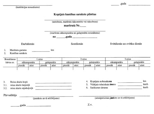 38.3. kopējais kustības saraksts pilsētas maršrutā (2.pielikums) vai autobusu kustības saraksts rajona vai tālsatiksmes maršrutā (3.pielikums);
