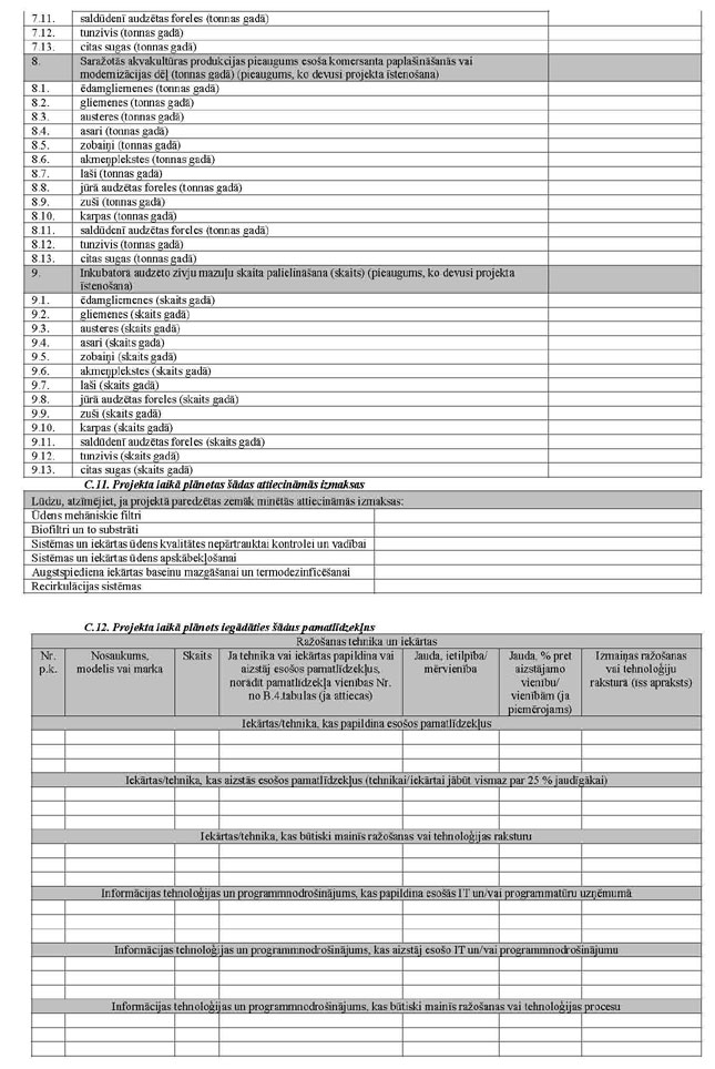 “12.10. ja projektā paredzētas investīcijas dīķsaimniecībā, – nekustamā īpašuma valsts kadastra informācijas sistēmā reģistrēta zemes robežu plāna vai situācijas plāna kopiju, kurā redzams esošo dīķu izvietojums ar eksplikācijā norādīto zemes un dīķu platību;