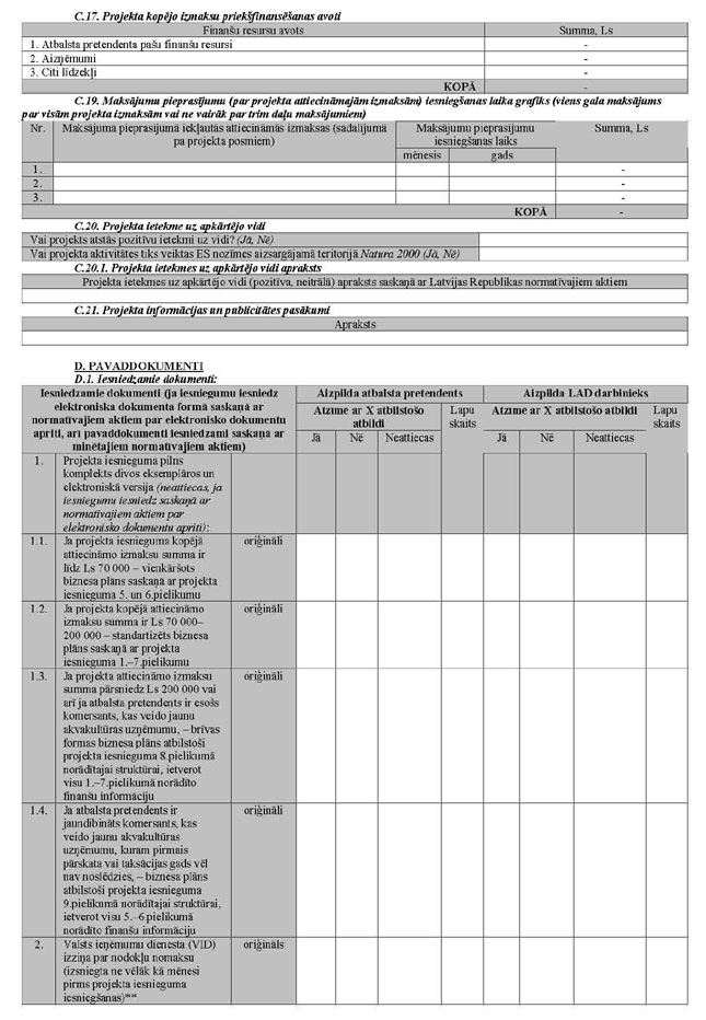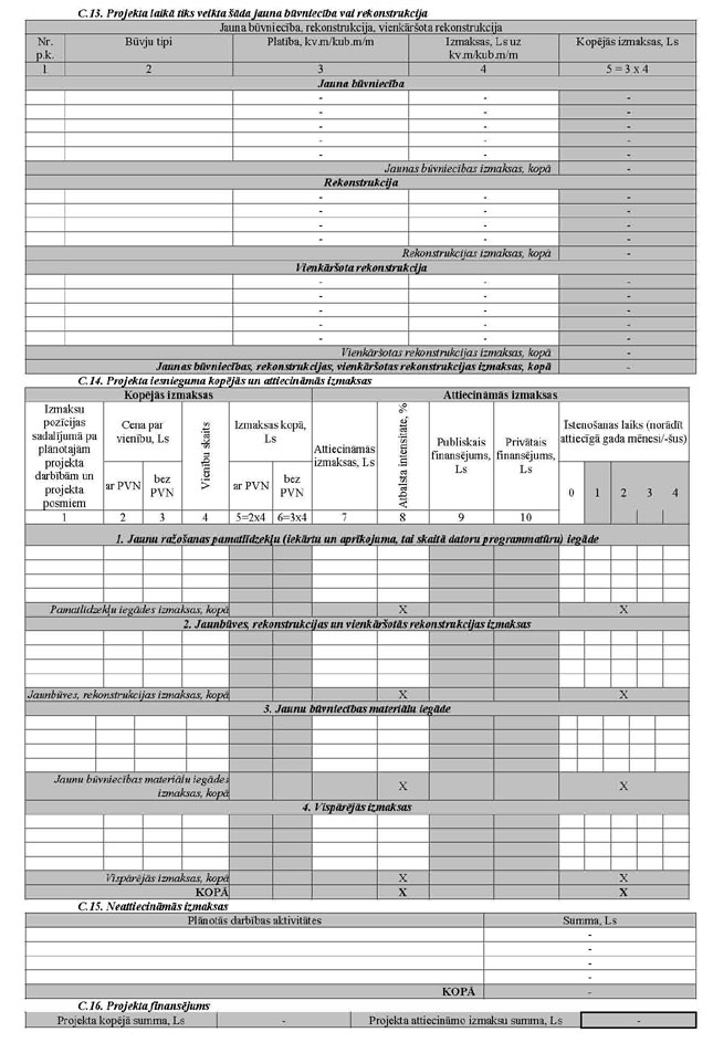 1.13. izteikt 2.pielikuma C daļu “Informācija par projektu”, D daļu “Pavaddokumenti” un E daļu “Atbalsta pretendenta deklarācija” šādā redakcijā: