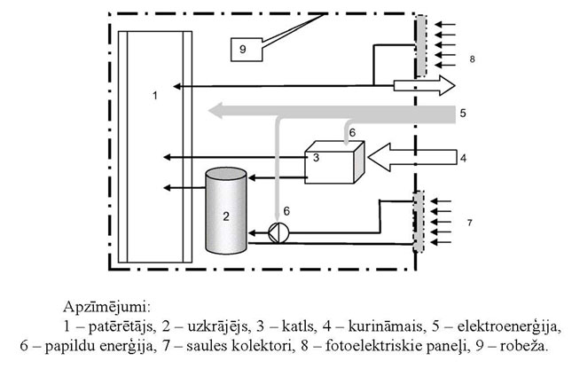 2.16. sistēmas robeža – robeža, kas ietver visus ar ēku saistītos laukumus (ēkas iekšpusē un ārpusē), kur enerģija tiek patērēta vai saražota;