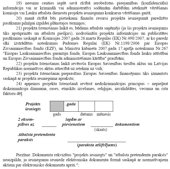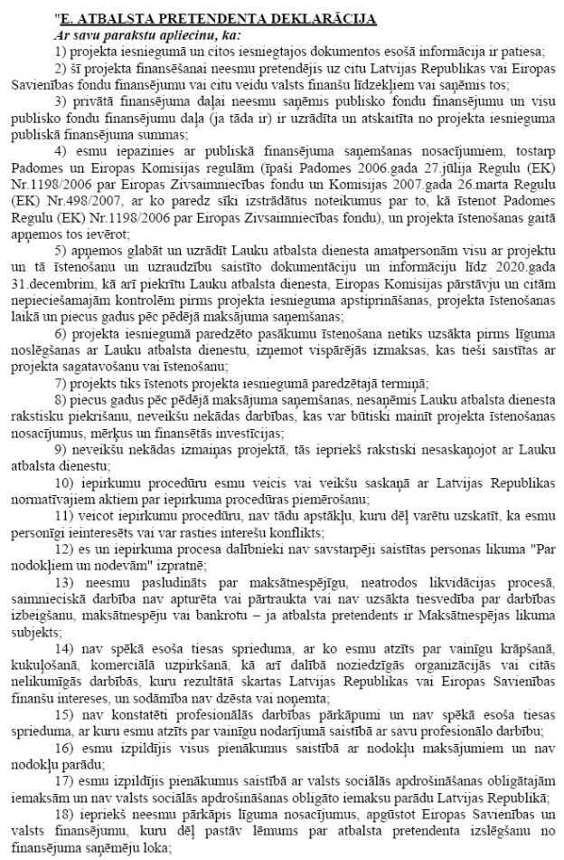 1.10. izteikt 1.pielikuma E daļu “Atbalsta pretendenta deklarācija” šādā redakcijā: