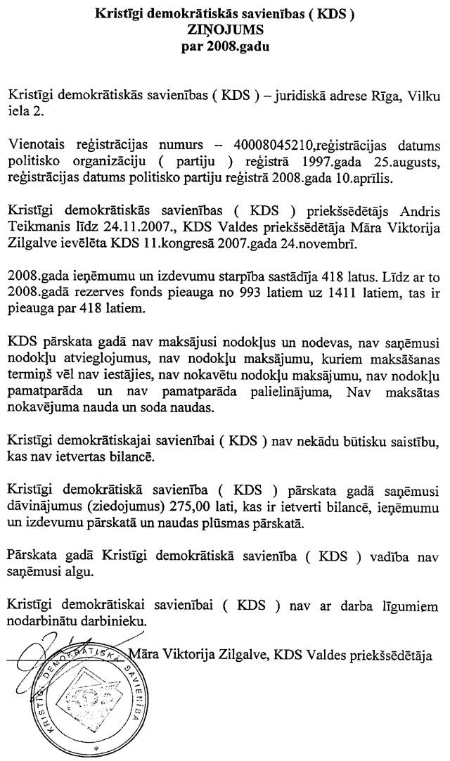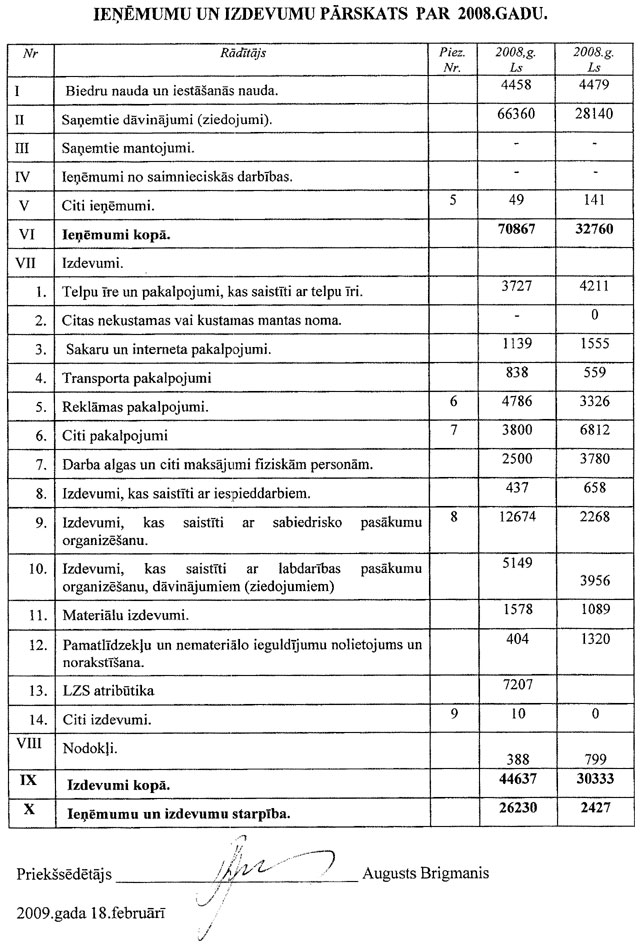 Darbības pārskati. Publicēts oficiālajā laikrakstā "Latvijas Vēstnesis", 25.02.2009., Nr. 31 https://www.vestnesis.lv/ta/id/188216
